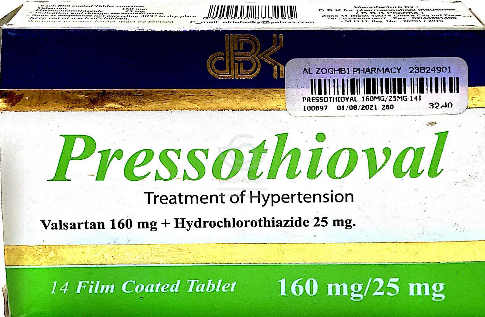كمية PRESSOTHIOVAL 160MG/25MG 14T